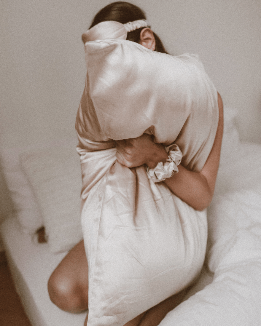 ბალიშის პირი დამზადებულია უმაღლესი (6A) ხარისხის 100% აბრეშუმის (22 momme) ქსოვილისაგან, სპეციალურად სახის კანისა და თმის მოვლისთვის. ბამბისა და სხვა ქსოვილებისგან განსხვავებით, აბრეშუმი ნაკლებშემწოვია, რაც კანსა და თმას ბუნებრივი ტენიანობის შენარჩუნებასა და ღამის დამატენიანებლების ეფექტის ბოლომდე ათვისებაში ეხმარება. აბრეშუმის ნაზი, სრიალა ზედაპირი ამცირებს ხახუნს და შესაბამისად – კანის გაღიზიანების, შეშუპების, ნაოჭების წარმოქმნის, აკნეს, თმის ღერის მტვრევისა და დამუხტვის ალბათობას.